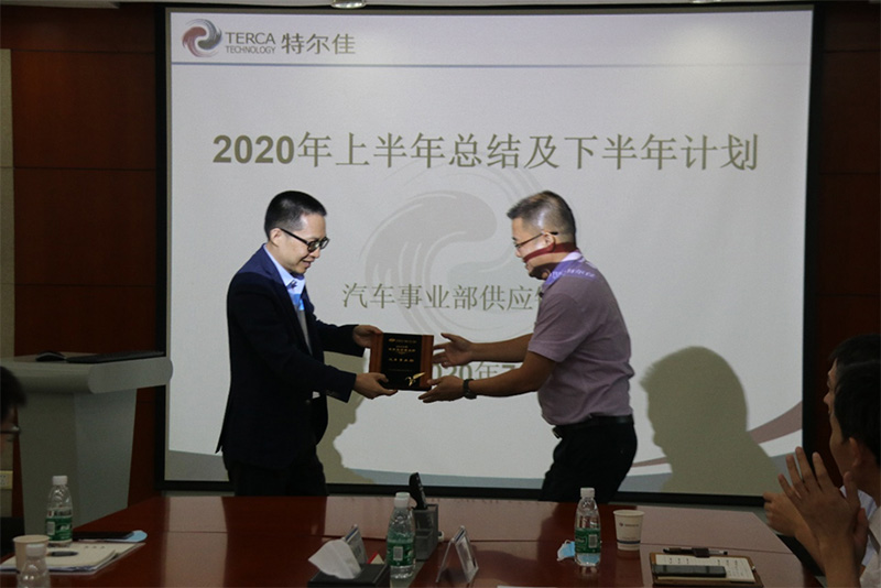 總經(jīng)理蔣暉向汽車(chē)事業(yè)部頒發(fā)上半年先進(jìn)事業(yè)部獎(jiǎng)
