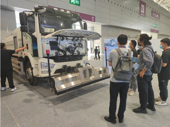作為參展企業(yè)之一,大為弘德專注于新能源汽車領(lǐng)域,致力于新能源專用汽車及相關(guān)領(lǐng)域的研發(fā)、生產(chǎn)及銷售,在大會上輸出著“大為能量”。大為弘德積極響應(yīng)國家政策,新能源環(huán)衛(wèi)車是大為弘德重點布局的領(lǐng)域。在1182號展廳,登場的是大為弘德新一款18噸純電動清洗車,此款車型采用寧德時代標(biāo)準(zhǔn)化磷酸鐵鋰電池,配備電量246kWh,滿足客戶“一次充電,一天作業(yè)”的需求。此款電動清洗車還配置有高壓清洗系統(tǒng)和低壓清洗兩套系統(tǒng),具有路面清洗、護(hù)欄隔離帶和人行道清洗、高壓噴槍、噴霧降塵、低壓沖洗、后灑水、電動40m高射炮等多種功能。特別適用于城市廣場、道路路面和路沿的高清潔度保潔作業(yè),可以應(yīng)對不同的道路清潔需求,應(yīng)用場景多元化。不僅如此,全新設(shè)計的水泵驅(qū)動系統(tǒng)可以有效降低車輛作業(yè)能耗,提升整車?yán)m(xù)航能力。真正達(dá)到“綠色、高效、安全”,更契合本屆博覽會“新能源、新業(yè)態(tài)、新交通”的主題!