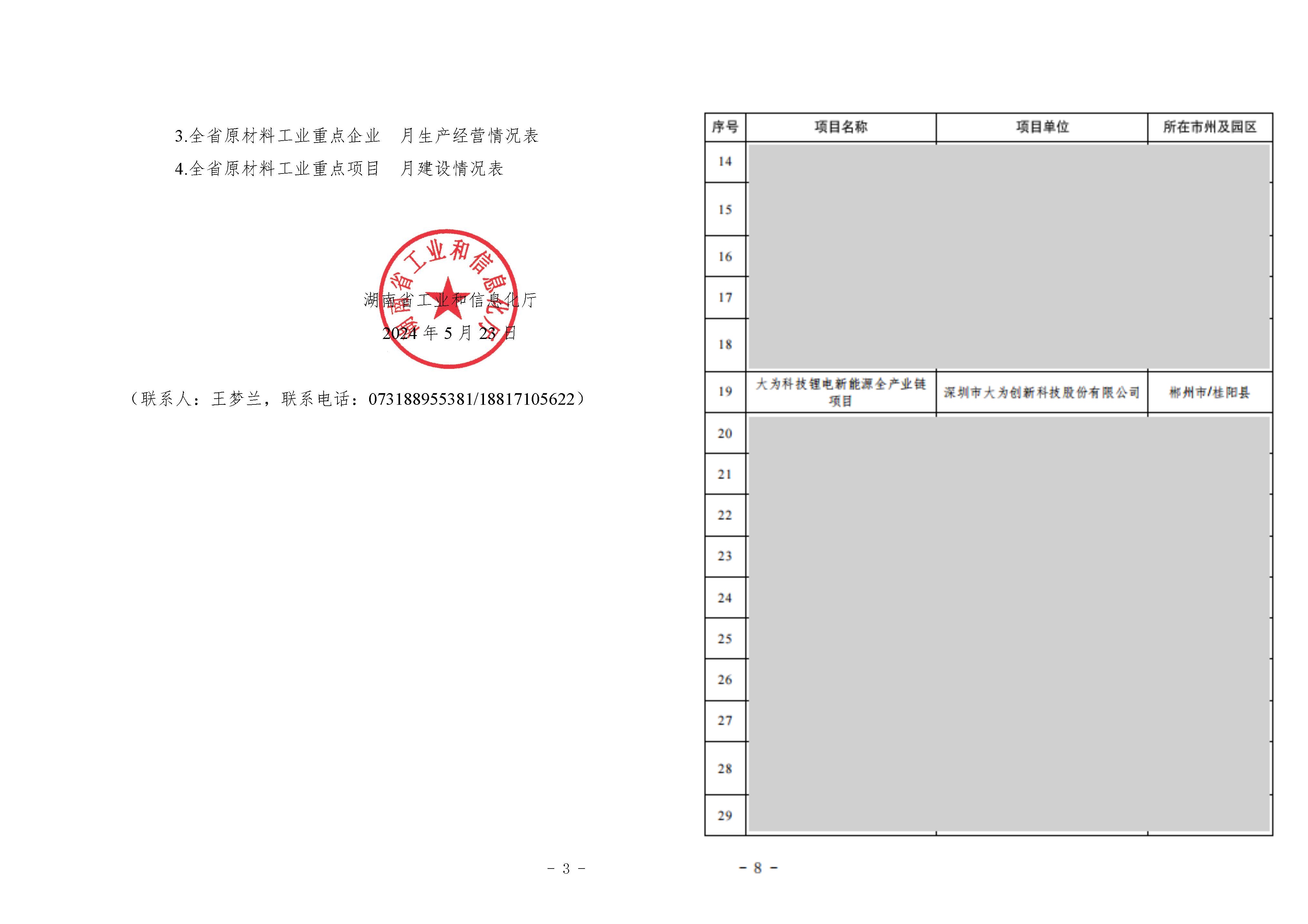 (2)大為股份入選湖南省2024年工信廳原材料工業(yè)重點(diǎn)項(xiàng)目