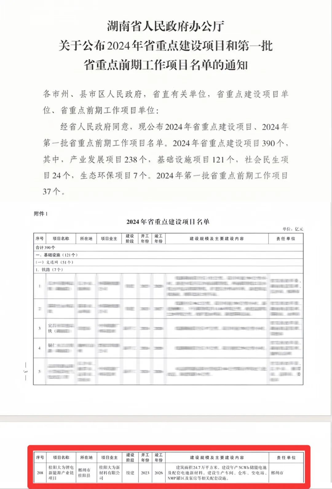 6、(1)大為股份郴州鋰電項(xiàng)目入選2024年湖南省重點(diǎn)建設(shè)項(xiàng)目