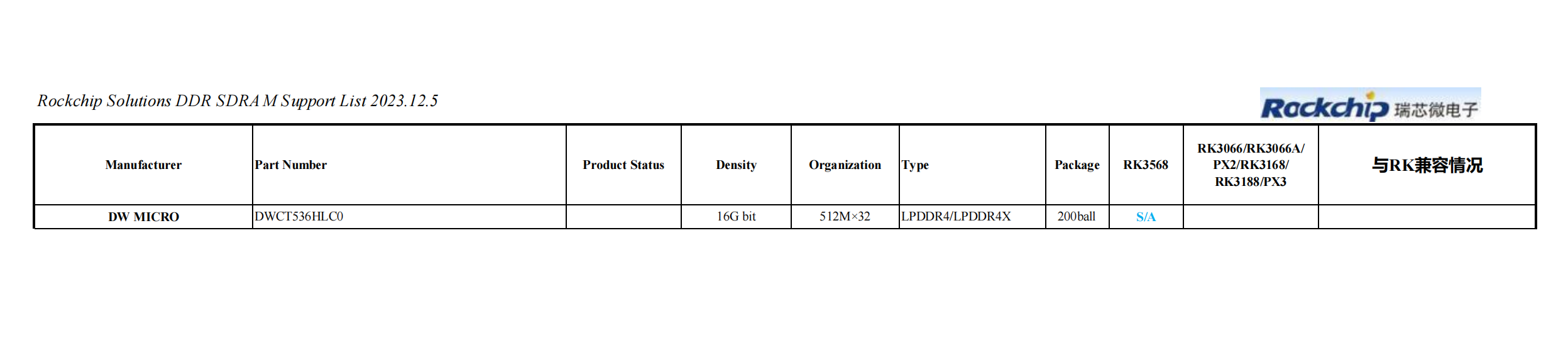近日,深圳市大為創(chuàng)芯微電子科技有限公司(DW MICRO,以下簡(jiǎn)稱“大為創(chuàng)芯”)在技術(shù)創(chuàng)新上邁出了堅(jiān)實(shí)的一步,其LPDDR4X DWCT536HLC0 產(chǎn)品通過(guò)了瑞芯微RK3568平臺(tái)的嚴(yán)苛認(rèn)證程序。