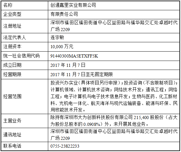 創(chuàng)通投資、創(chuàng)通實(shí)業(yè)的實(shí)際控制人均為連宗敏女士,詳情可參見公司同日刊載于巨潮資訊網(wǎng)(www.cninfo.com.cn)上的《詳式權(quán)益變動報(bào)告書》。