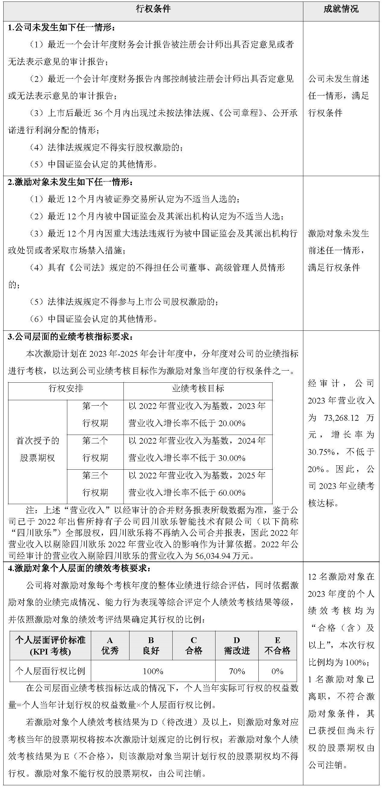 (二)股票期權(quán)第一個(gè)行權(quán)期行權(quán)條件成就的說(shuō)明