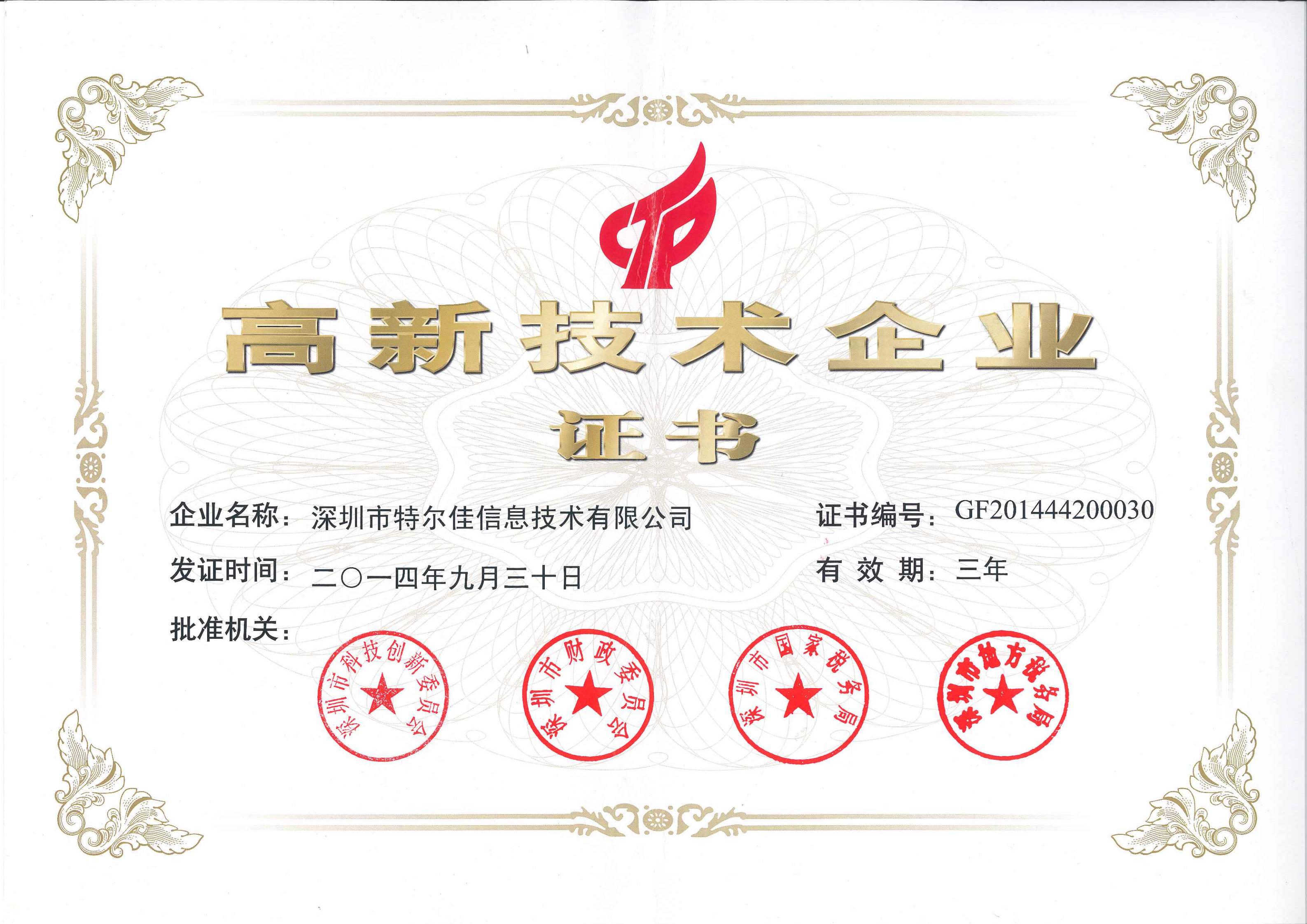 被認(rèn)定為“深圳高新技術(shù)企業(yè)”