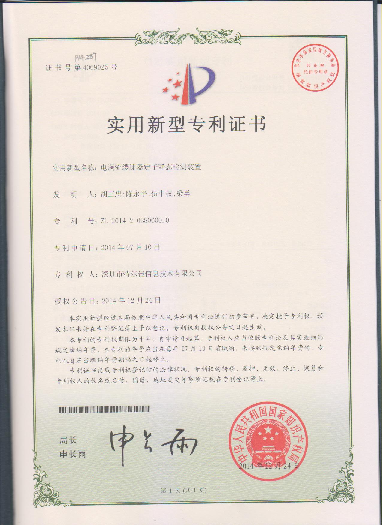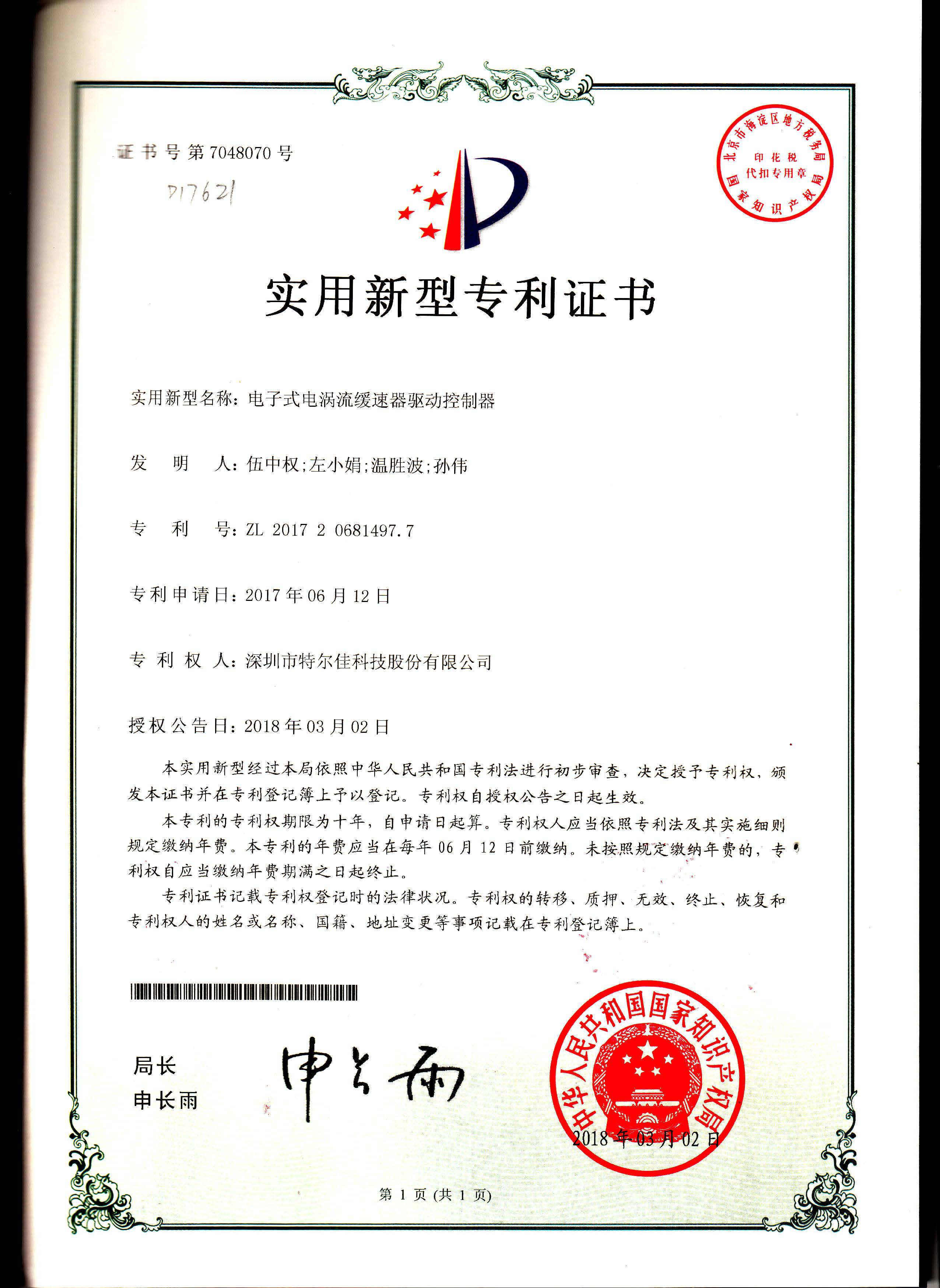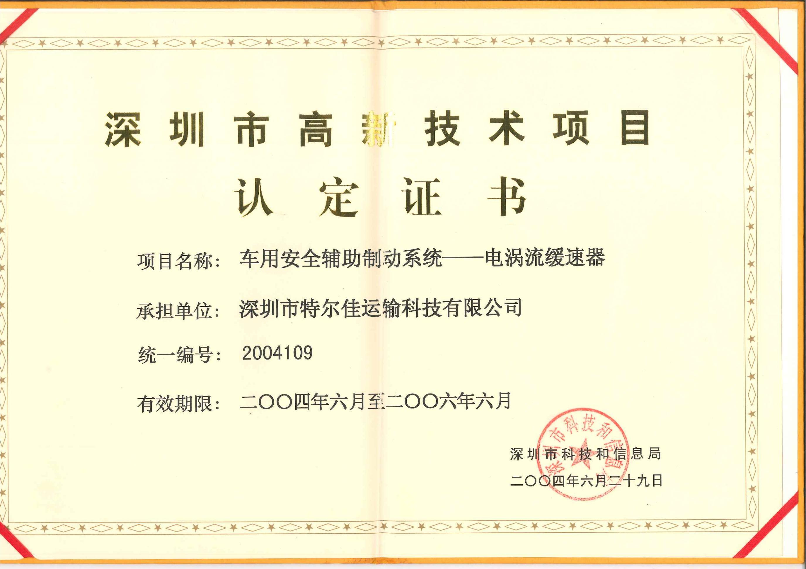 特爾佳電渦流緩速器榮獲“深圳市科技進(jìn)步獎”