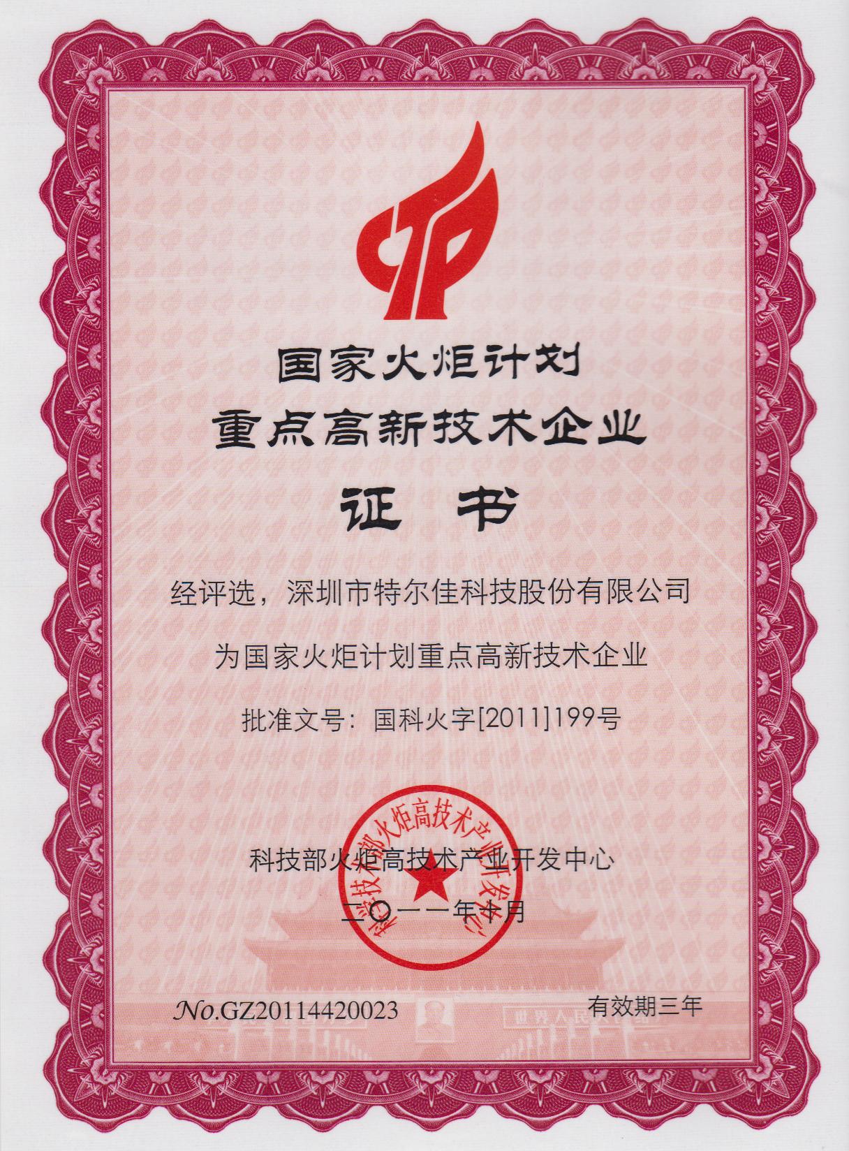 被科技部認(rèn)定為“國家火炬計(jì)劃重點(diǎn)高新技術(shù)企業(yè)”