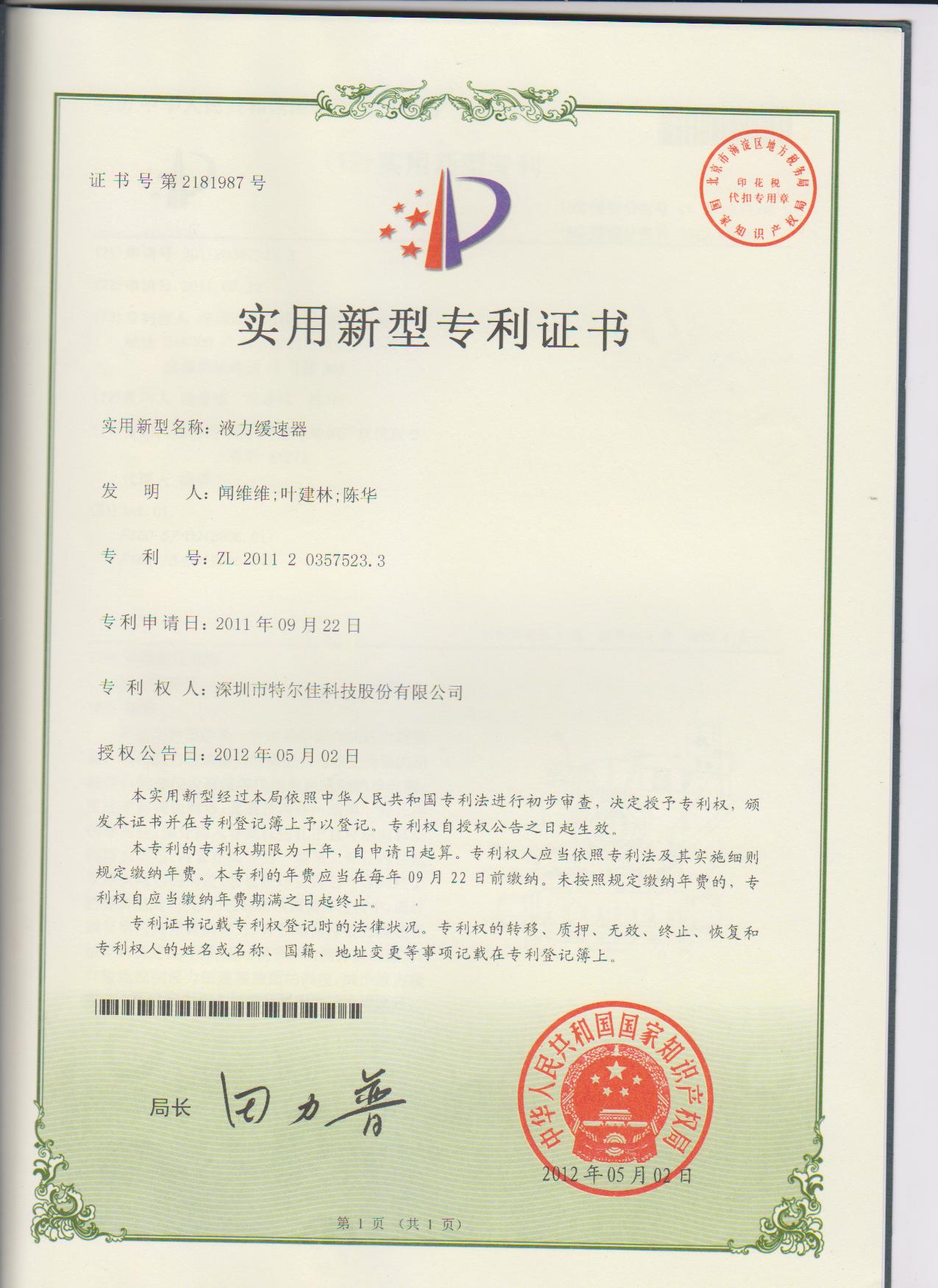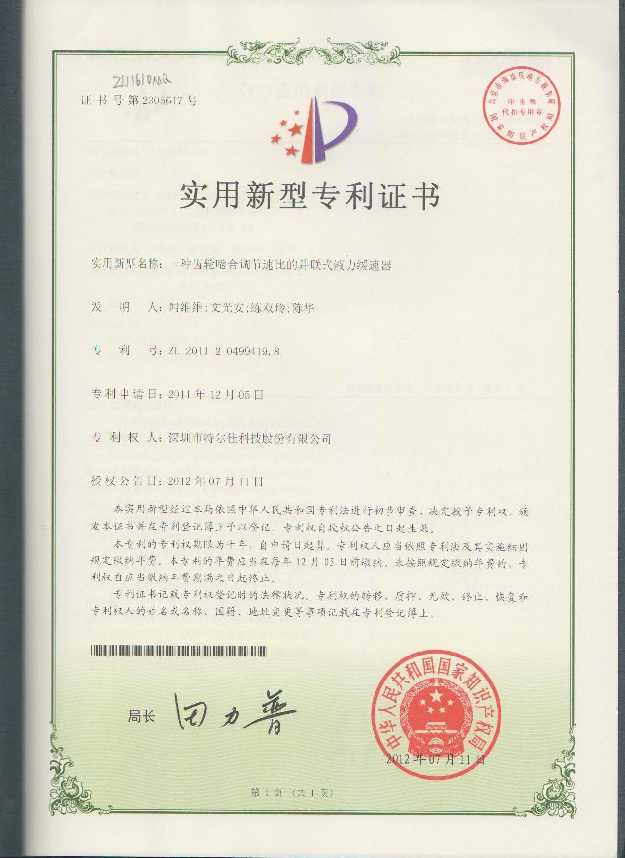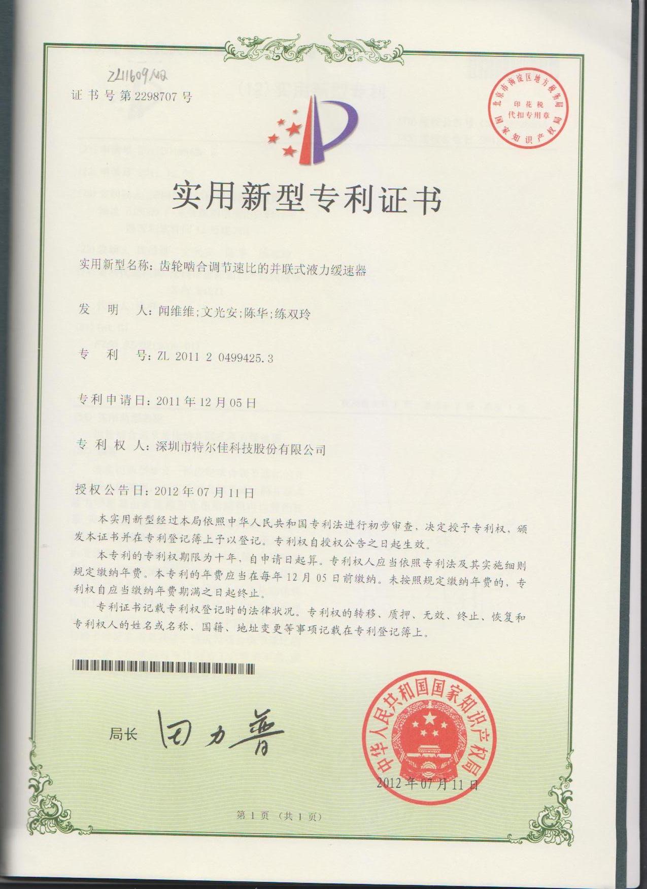 特爾佳緩速器被評為“深圳市知名品牌”